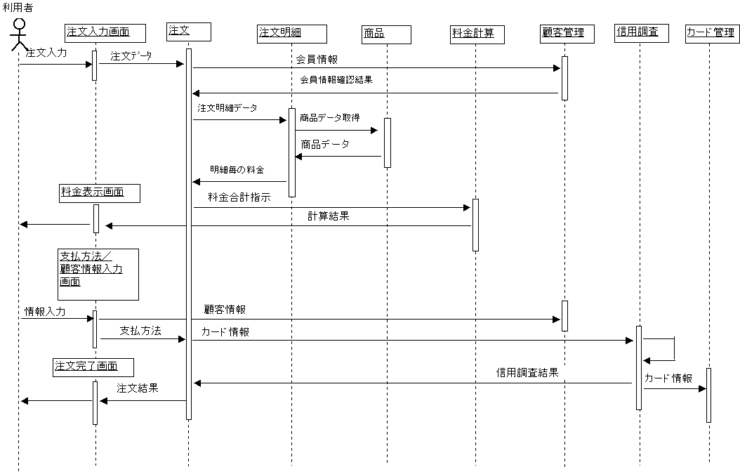 課題カダイ2のシーケンス 注文チュウモン入力ニュウリョクから注文チュウモン完了カンリョウまでをげた。  省略ショウリャク